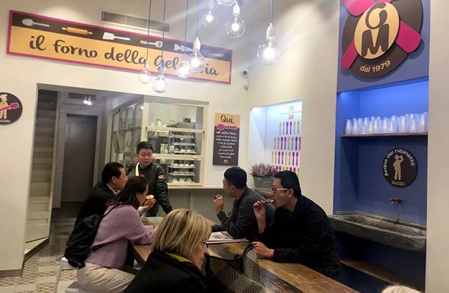 在意大利,柏拉蒙考察團研究了Gelato(意大利冰淇淋)。雖然Gelato風是最近幾年才在中國刮起來的,但是作為意大利的國民甜品,其歷史也比工業(yè)冰淇淋悠久很多??疾靾F對產(chǎn)品渠道、產(chǎn)品包裝、店面形象等進行了詳盡調(diào)研。