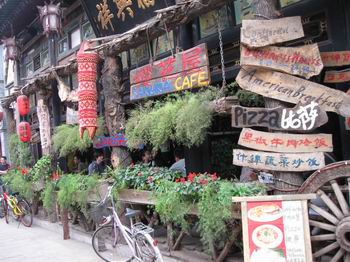 這家酒吧也對(duì)外供應(yīng)午餐,據(jù)說(shuō)大廚是平遙最著名的星級(jí)飯店的主廚,戴著雪白的像蛋糕一樣高高的帽子。一碗刀削面要十元,比青島的價(jià)格還要高出兩三元,如果加雞蛋還要另加五元。我們幾個(gè)都不喜歡吃雞蛋,當(dāng)即要了四碗不加雞蛋的。端上來(lái)后,湯醇面白,確實(shí)美味。這時(shí)對(duì)面兩位要了兩碗加雞蛋的,我們一看這雞蛋大吃一驚,竟然就是兩個(gè)剝了皮的茶葉蛋!五元買(mǎi)倆茶葉蛋啊!恐怕是全國(guó)最貴的茶葉蛋了。剛開(kāi)始我們還以為是煎雞蛋呢。吃到一半,感覺(jué)湯太少面太干,于是問(wèn)服務(wù)員要兩碗湯。“我們這里的湯是收費(fèi)的。”真驚了,連碗面條湯都要收費(fèi),不喝了!