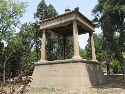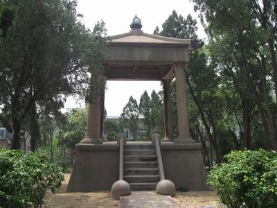 離神社不遠的山坡上,現(xiàn)在是一座小公園,進門就有一座風格迥異的涼亭,它的線條與中國古典亭閣絕然不同,四角各有一個龍首,綠銹斑斑,原來是銅的,龍須昂首,完好無損,亭上是一朵銅制蓮花。亭子原來掛有銅鐘,現(xiàn)在只剩掛鈕還在。大日本帝國的喪鐘已經(jīng)不知去向。